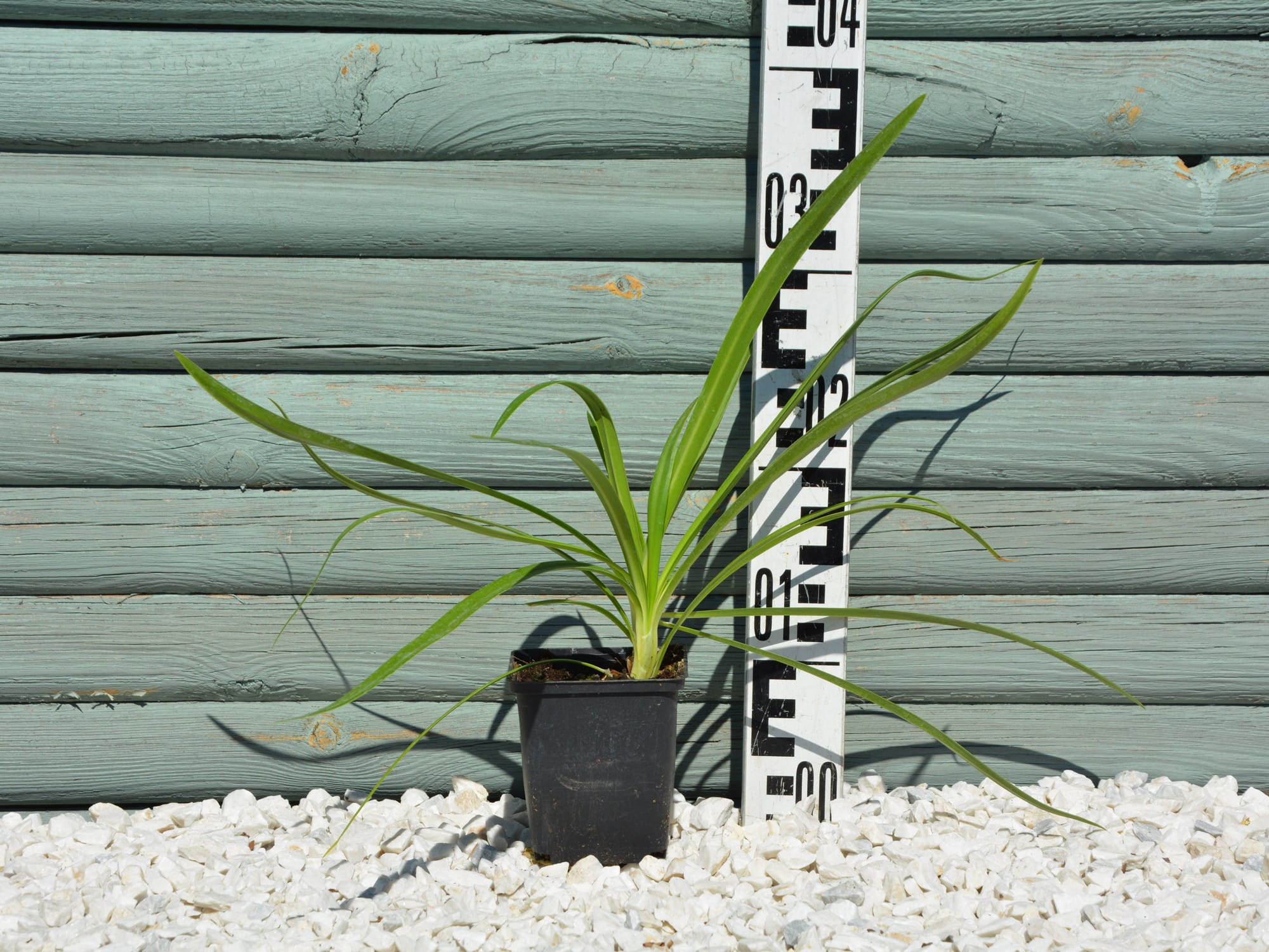 Tworzy kępy o wysokości do 60 cm i szerokości do 50 cm. Długie, szablaste liście lekko się przewieszają.