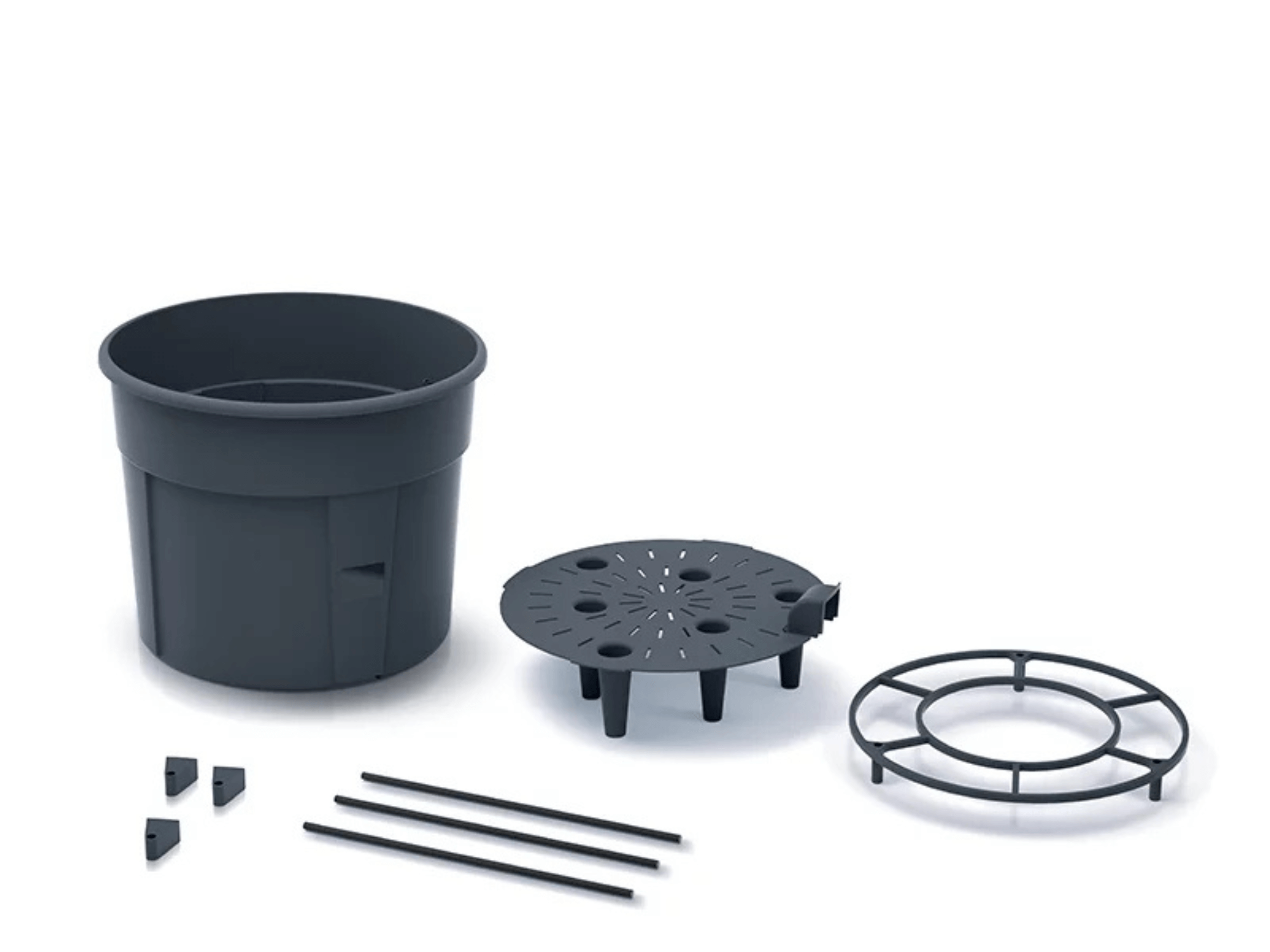 Zawartość opakowania: doniczka, podstawka drenująca, składana konstrukcja podpór.