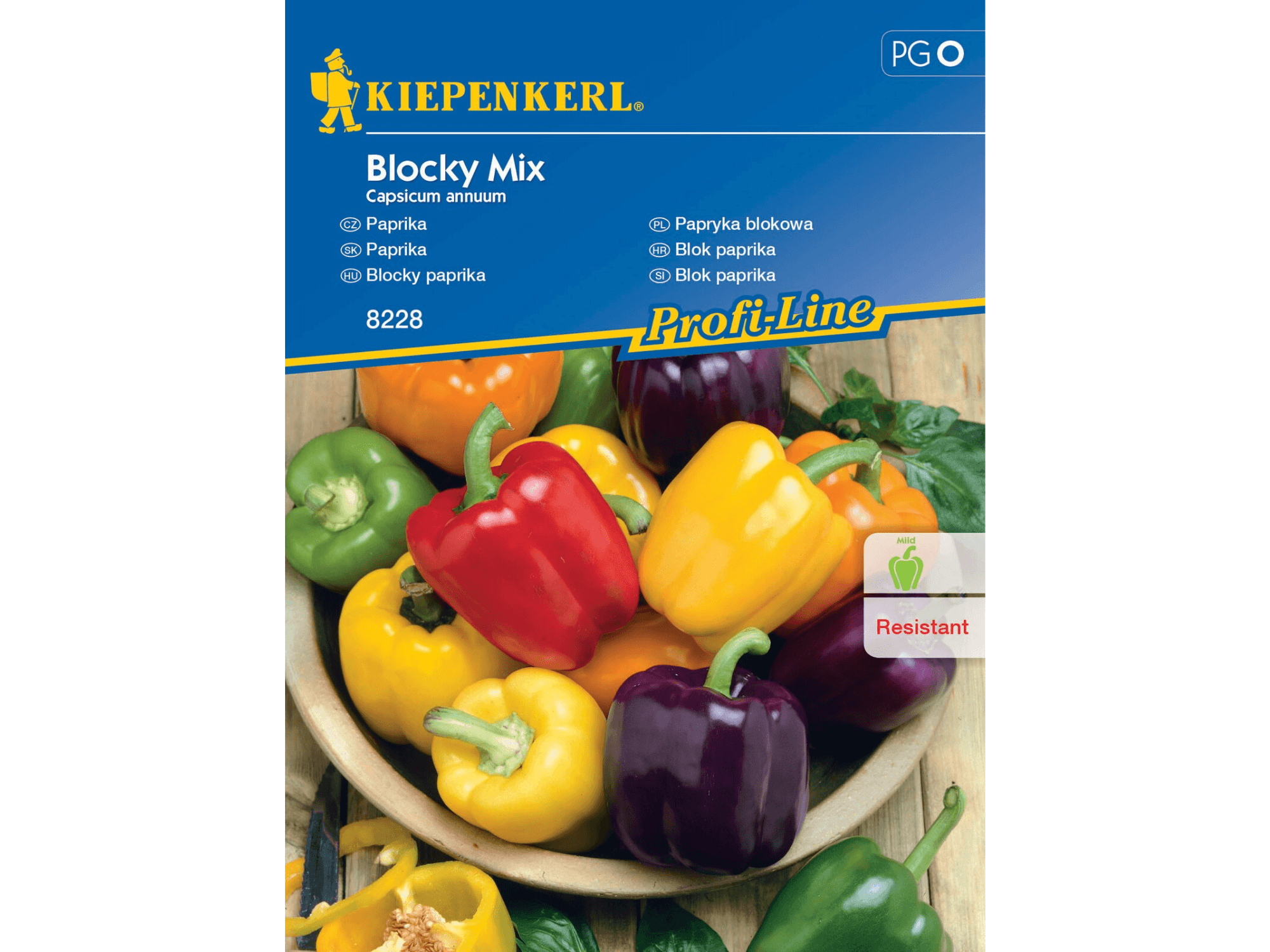 Papryka słodka 'Blocky Mix’ F1 to zestaw pysznych i aromatycznych papryczek w różnorodnych kolorach, takich jak żółty, zielony, pomarańczowy, a nawet ciemnofioletowy. Owoce charakteryzują się jędrnością i chrupkością, są dość duże dlatego warto podwiązywać krzaczki. Rośliny osiągają wysokość do 80 cm, mają zwarty pokrój. Owocują średnio wcześnie. Dzięki dobrej odporności i obfitym plonowaniu, sprawdzą się nawet uprawiane przez początkujących ogrodników.