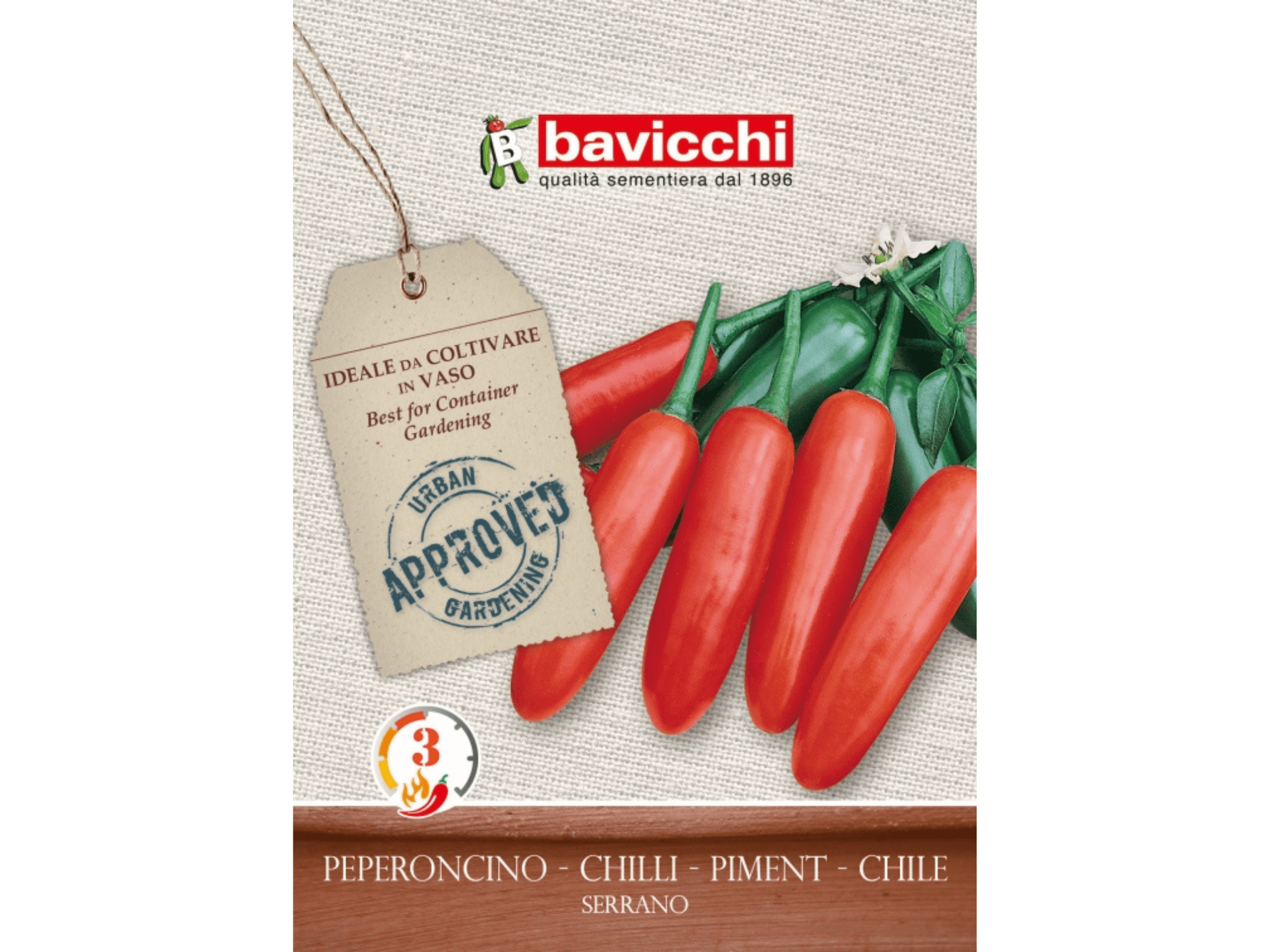 Zwarta odmiana o kompaktowym rozmiarze – sprawdzi się sadzona w donicy na balkonie lub tarasie. Dojrzałe papryczki mają wydłużony kształt, czerwony kolor i cieniutka skórkę. Pojedynczy owoc ma około 7 cm długości i 2 cm szerokości. Papryczka 'Serrano’ jest ostra dzięki czemu wspaniale wzbogaca smak sosów, zup i innych potraw.