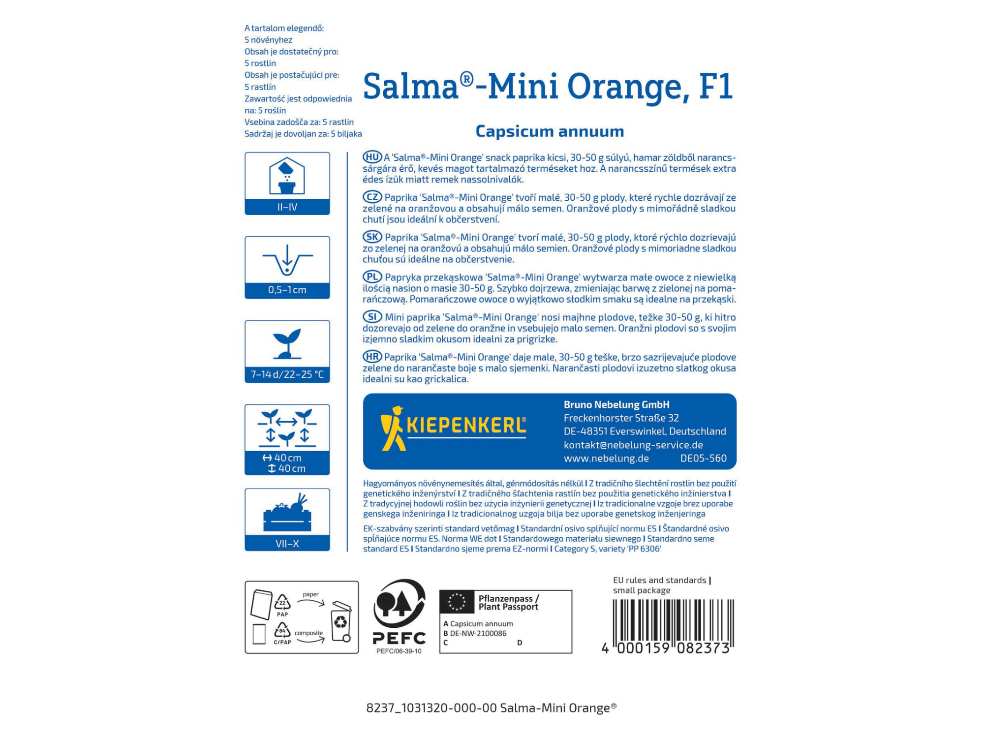 To odmiana słodkiej papryki typu przekąskowego, idealna do uprawy w doniczkach na balkonach i parapetach ze względu na swój niewielki wzrost. Sprawdzi się zatem szczególnie u osób z małą ilością miejsca przeznaczonego do upraw. Papryka wytwarza mnóstwo małych, podłużnych, słodkich i chrupkich owoców, które są koloru pomarańczowego i są idealne do jedzenia na surowo. 'Mini Orange’ charakteryzuje się dobrą tolerancją na stresy środowiskowe.