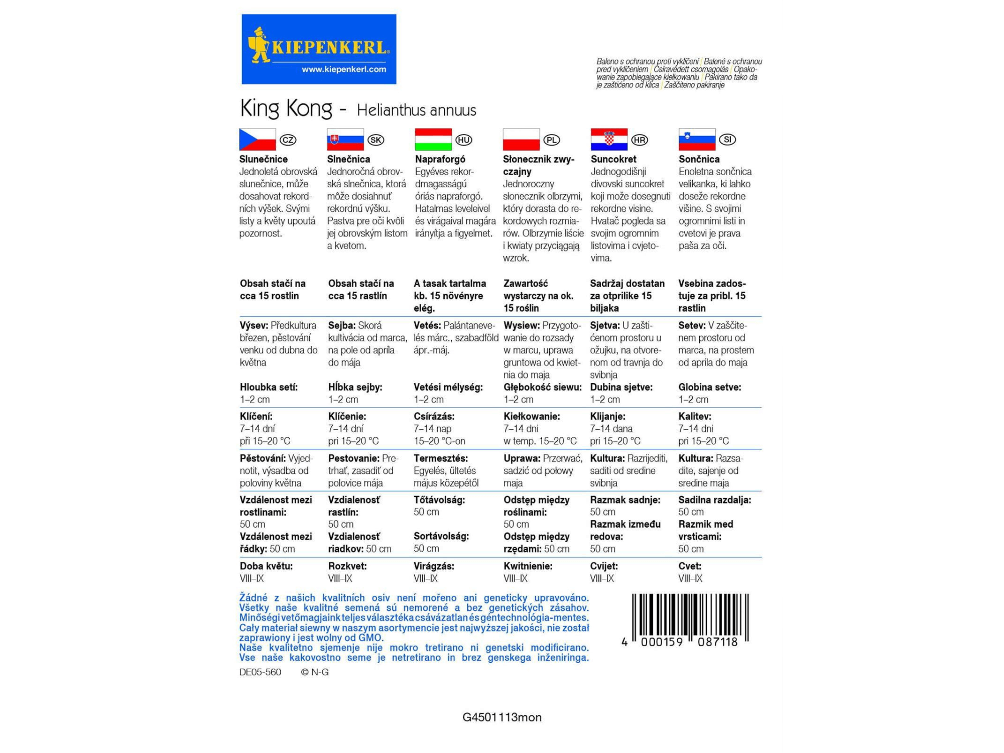 'King Kong’ to bardzo wysoka odmiana słonecznika, dorastajaca nawet do 4,5 m wysokości! Rośnie szybko i tworzy ogromne kwiatostany pełne jadalnych nasion. Mogą one stanowić smaczną przekąskę lub pożywienie dla ptaków. Roślina pożyteczna, ale też bardzo atrakcyjna.